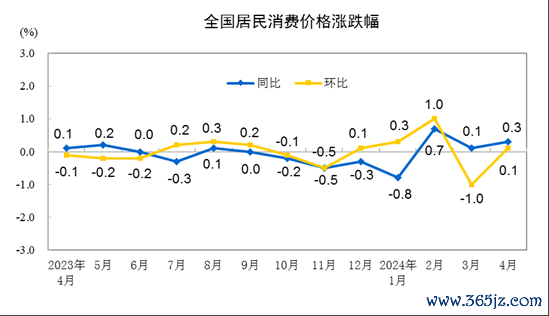 2024年4月份居民消费价格同比上涨0.3%